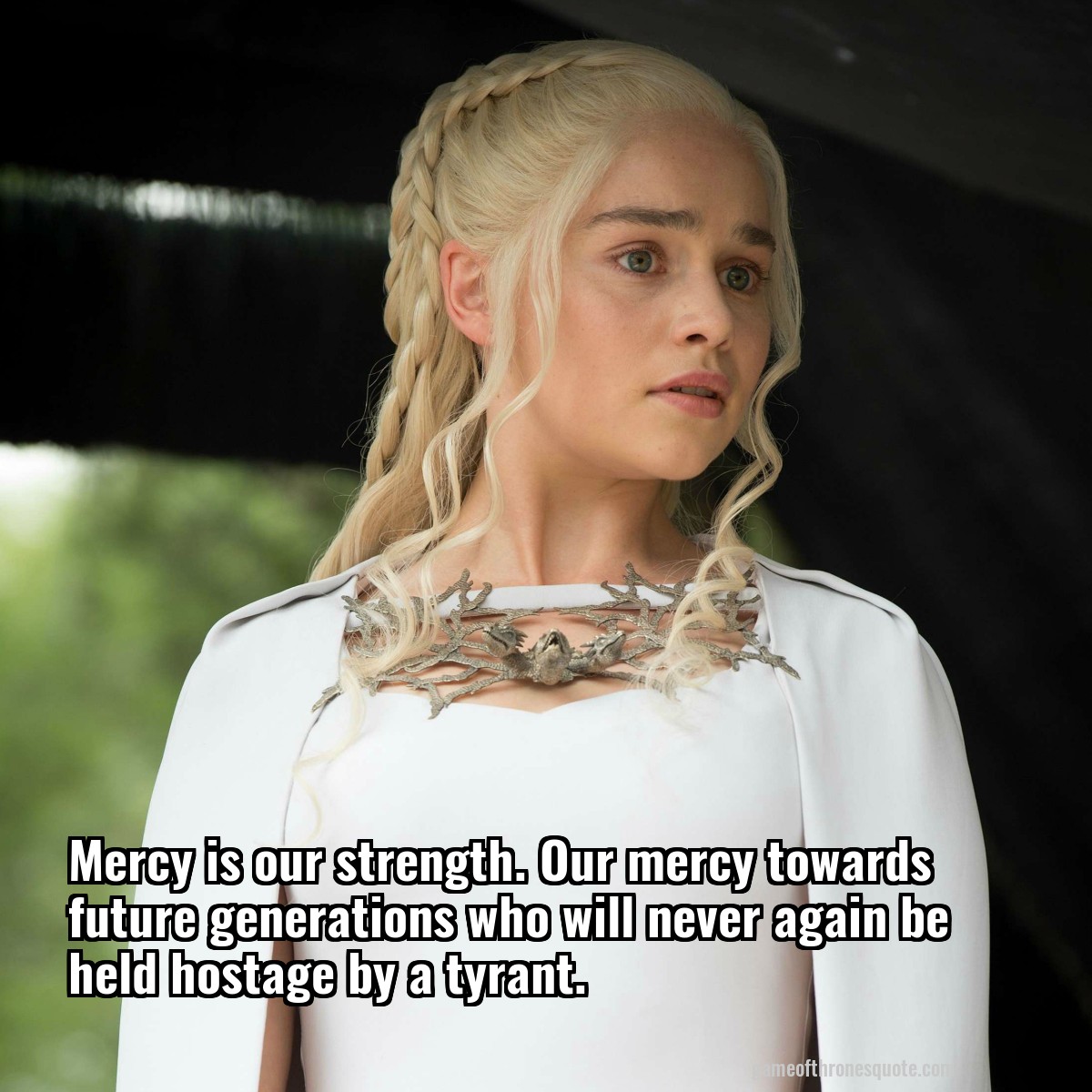 Mercy is our strength. Our mercy towards future generations who will never again be held hostage by a tyrant.