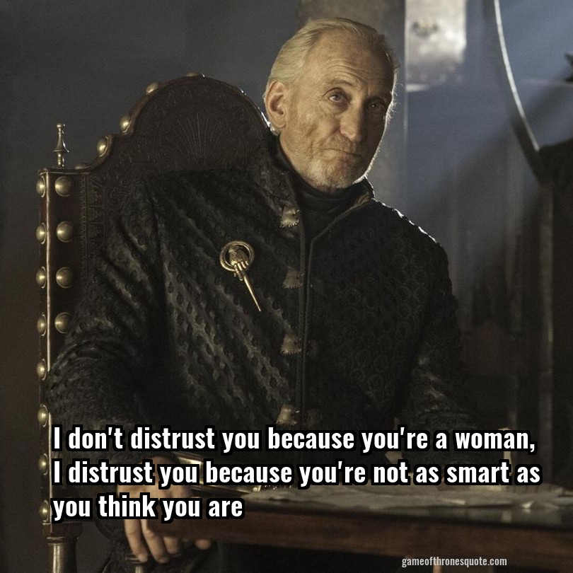 I don't distrust you because you're a woman, I distrust you because you're not as smart as you think you are